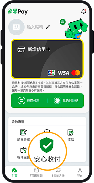 於綠界Pay App 收款專區點選「安心收付」