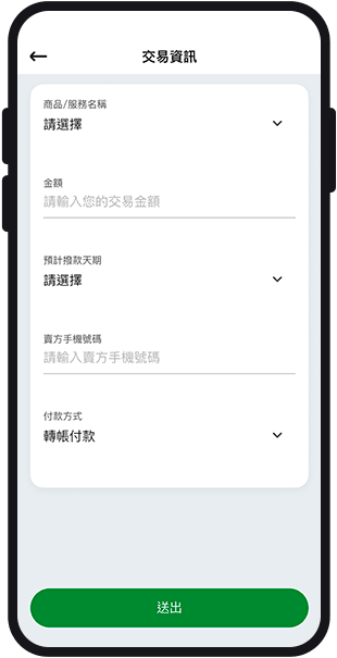 買家填寫商品內容、預計撥款天期等交易資訊