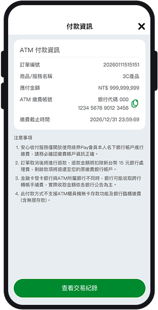 賣雙方皆須先註冊成為綠界 Pay 會員,並完成TWCA手機門號認證;若您是賣方,除上述 TWCA 驗證外,還需通過非信用卡收款審核,通過後即可使用安心收付進行交易收款。