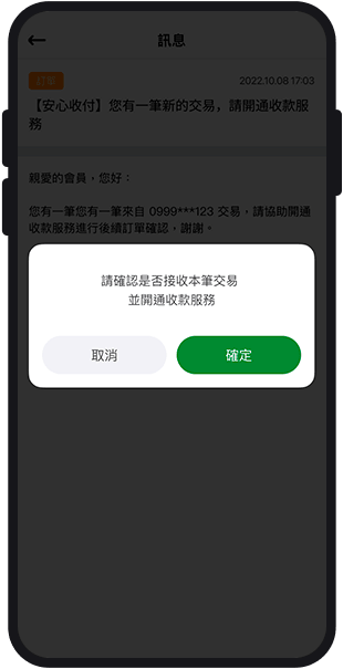 買家繳費完成後,賣家會收到交易待確認推播通知